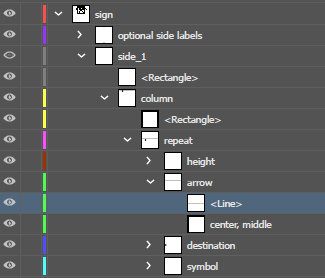 In this particular example, we'll show you how to have dividers show up automatically based on the existence of a certain element. For this example, it will automatically show up above every arrow in the sign artwork.