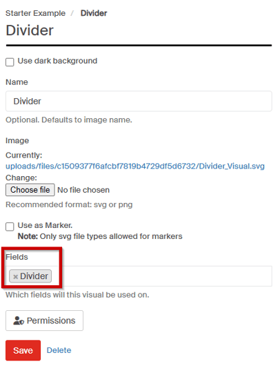 Ensure the visual is tied to the "Divider" field exclusively. This will ensure that other possible visuals do not appear as options when selecting the divider.
